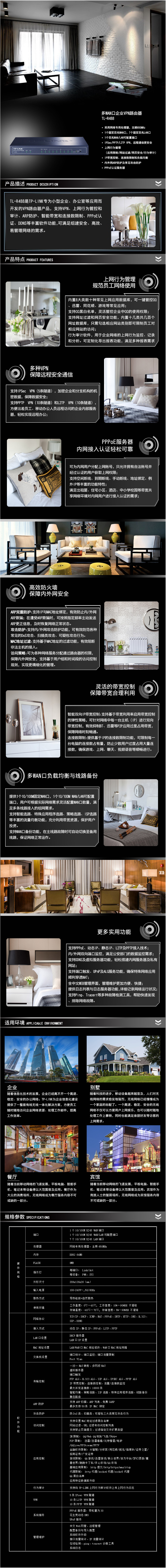 TP-LINK R488 双WAN口9口百兆企业级有线路由器PPPOE上网行为管理VPN
