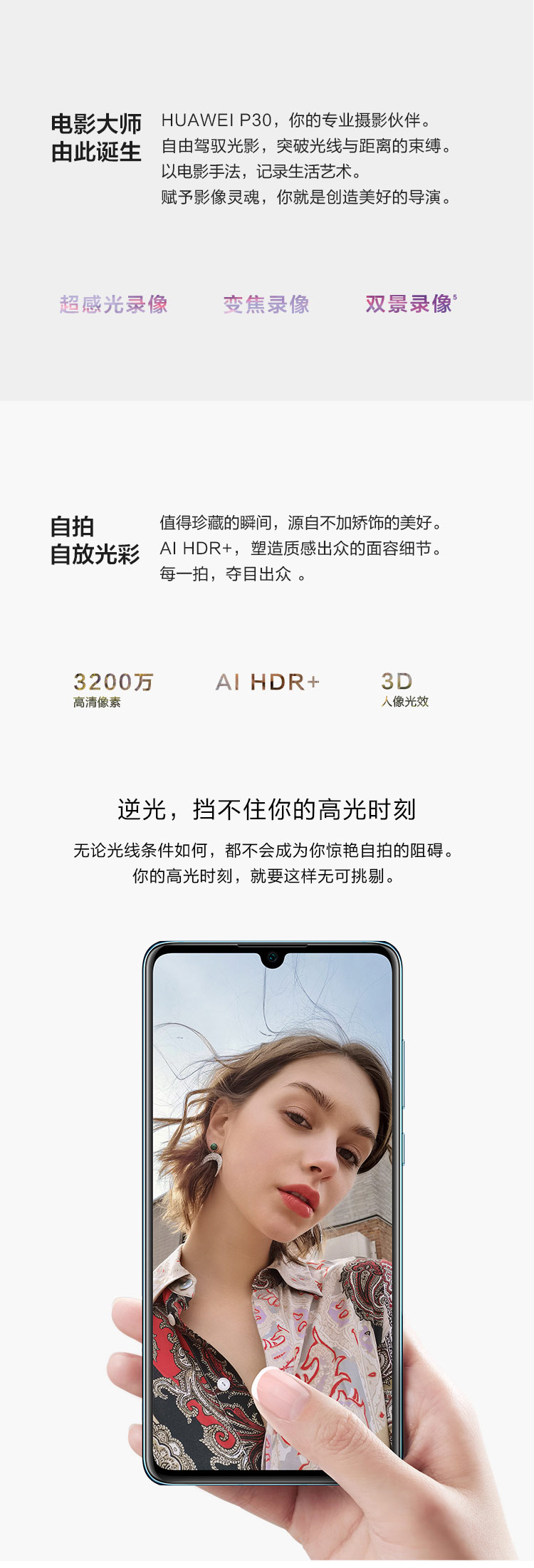 HUAWEI/华为P30 亮黑色 8GB+128GB 徕卡三摄 未来影