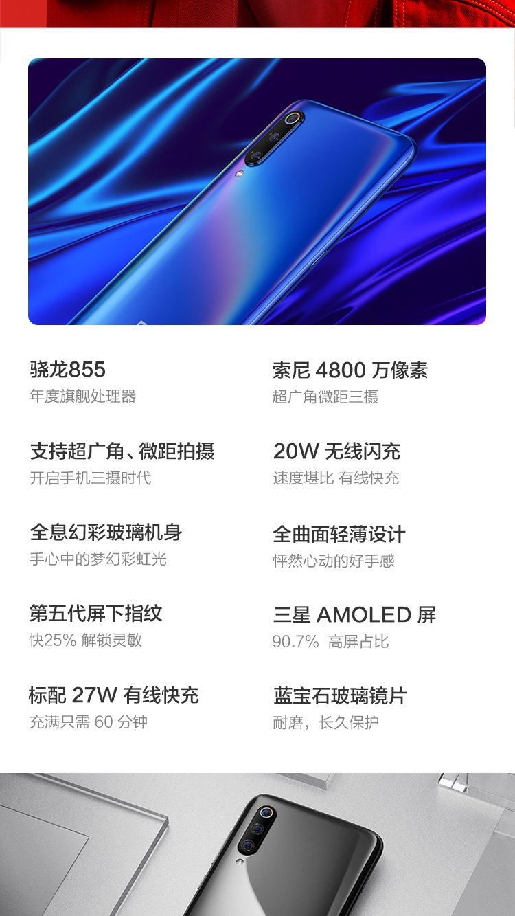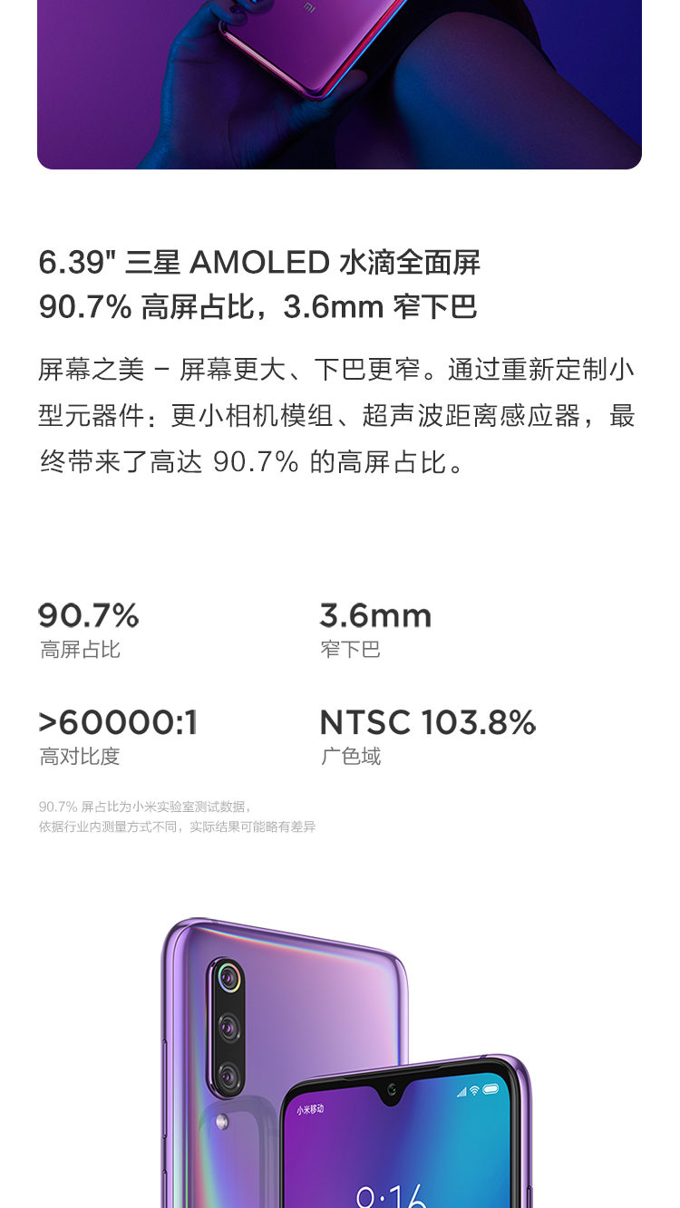 Xiaomi/小米 小米9 6GB+128GB 全息幻彩紫 移动联通