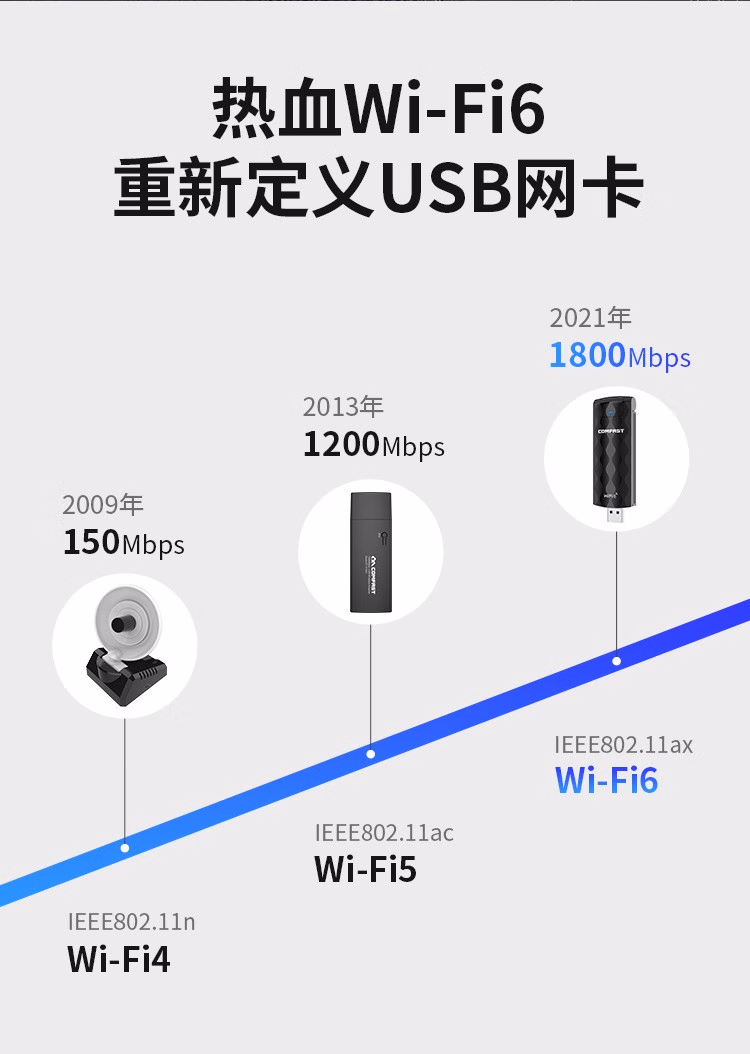 COMFAST 双频1800M无线USB网卡电竞游戏WiFi6网卡 CF-955AX +延长底座