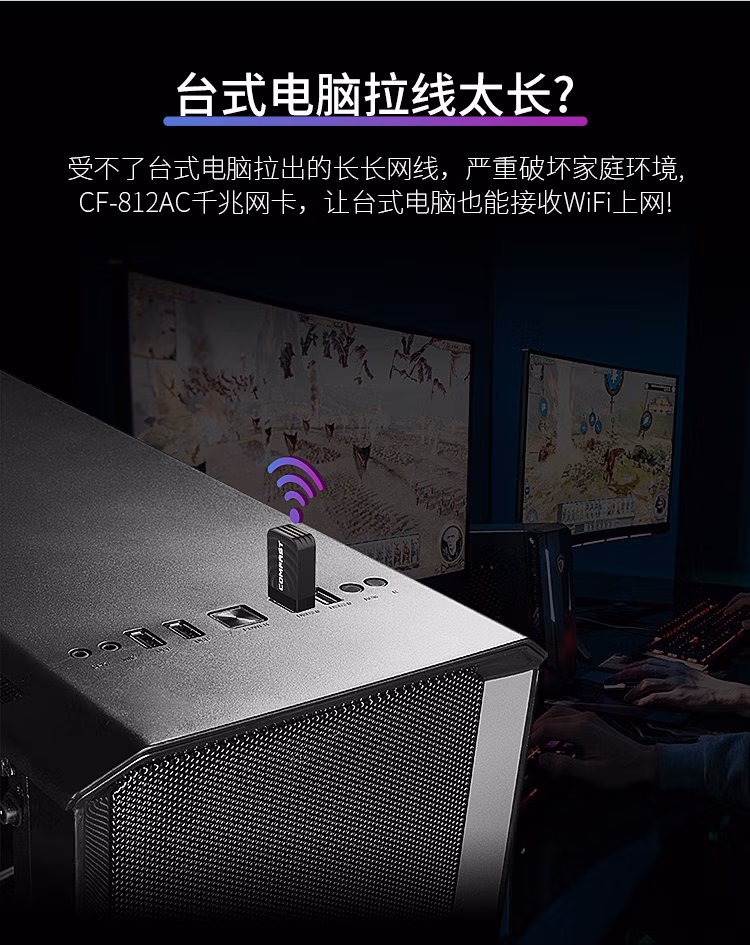 COMFAST 1300M双频5G USB3.0无线网卡 WiFi接收器发射器 CF-785AC【4天线免驱】