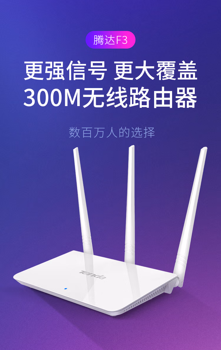 腾达(Tenda) 300M 家用无线路由器 小户型wifi中续扩展路由器 F3【三天线】