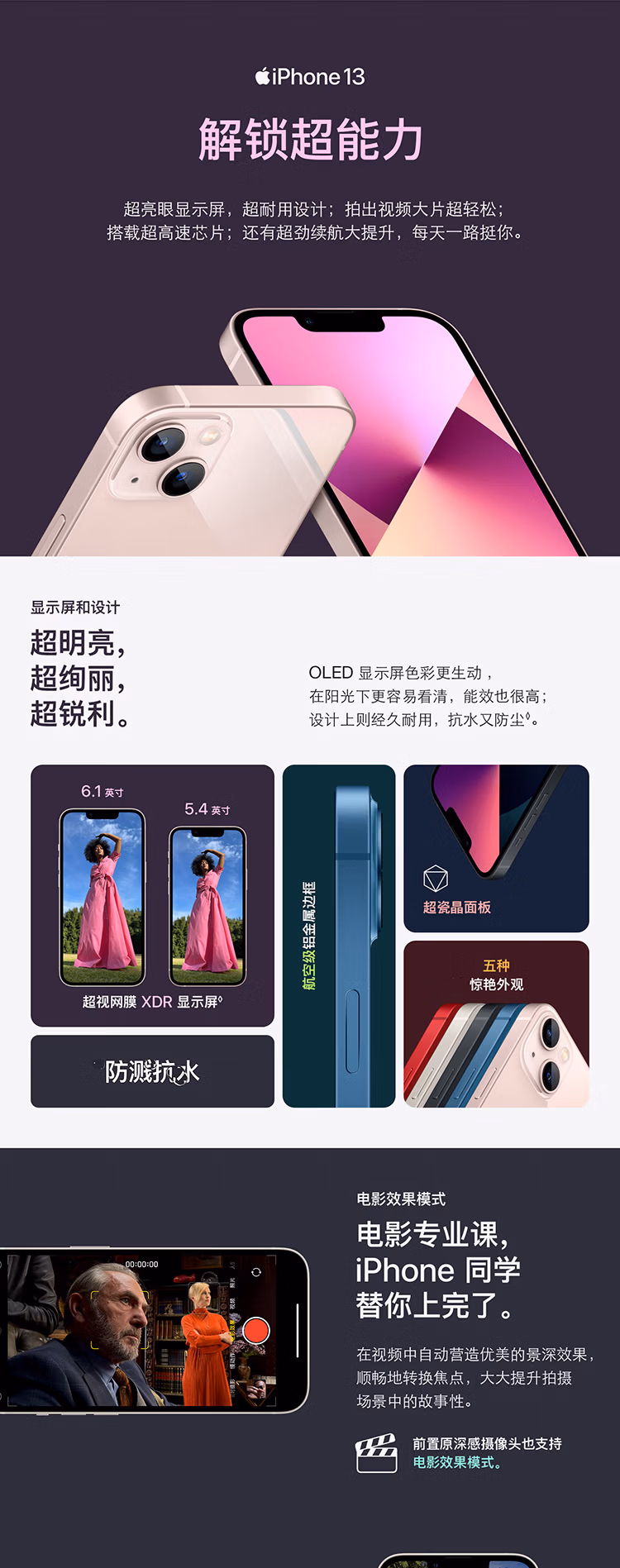 Apple iPhone 13 (A2634) 128GB 星光色 支持移动联通电信5G 双卡双待手机