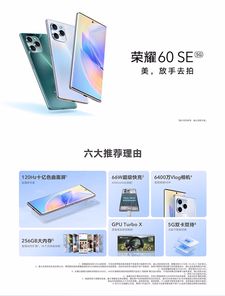 荣耀60 SE 120Hz十亿色曲面屏 66W超级快充 6400万Vlog相机 全网通版 5G手机 8GB+128GB 亮黑色