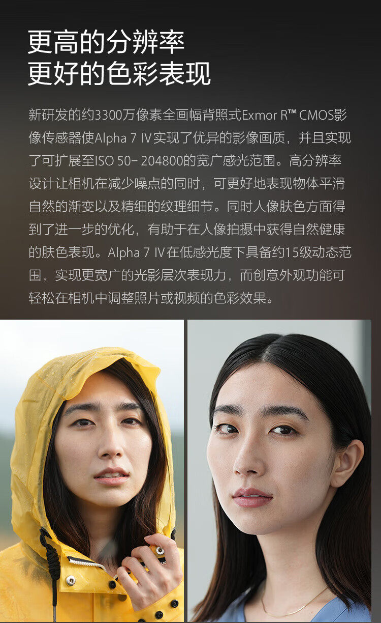 使Alpha 7 IV具备了出色的性能和影像质量,可提供数据高速读取、高感光低噪点和高精度的色彩表现