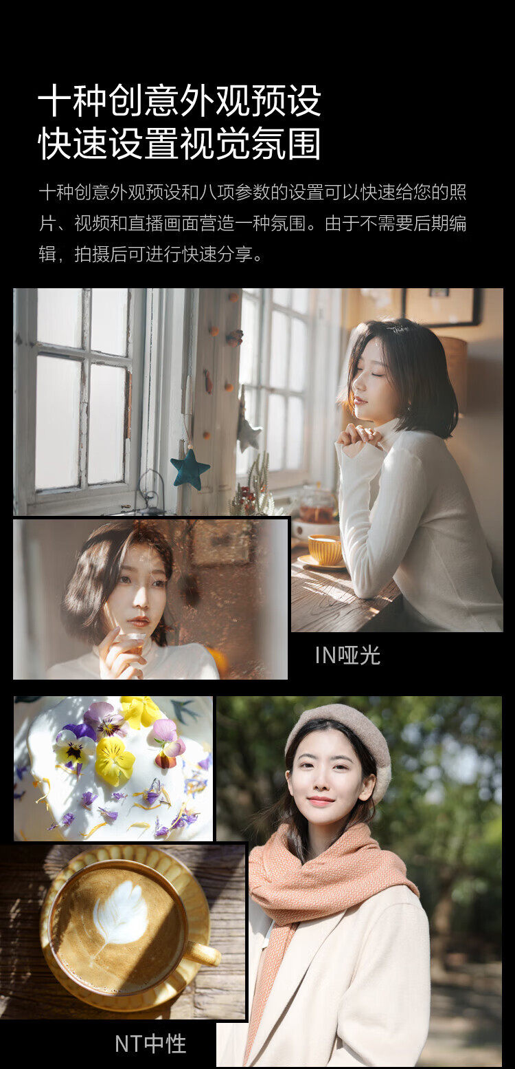 实现更宽广的光影层次表现力,而创意外观功能可轻松在相机中调整照片或视频的色彩效果