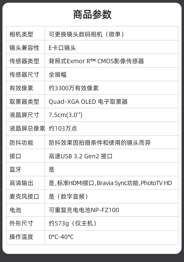 Alpha 7 V采用了新研发的约3300万像素全画幅背照式Exmor RCMOS影像传感器