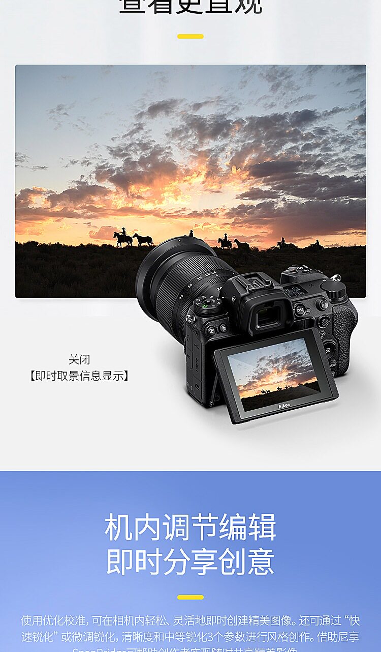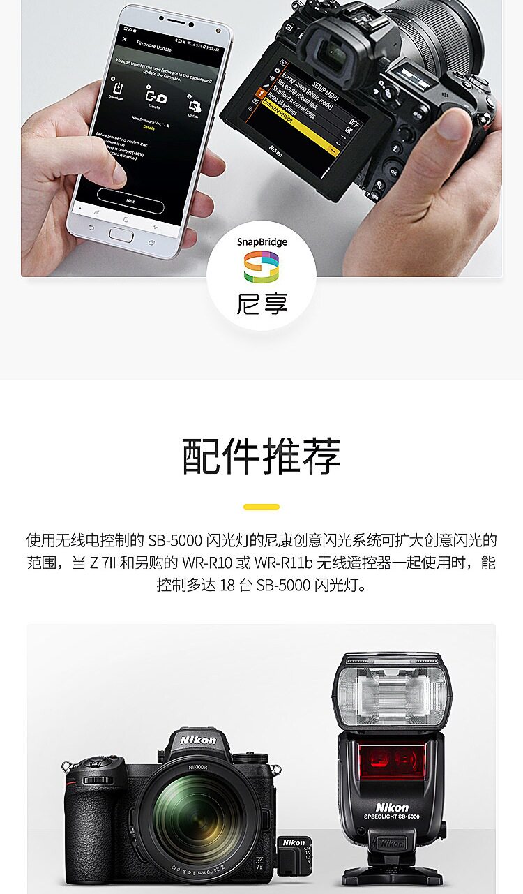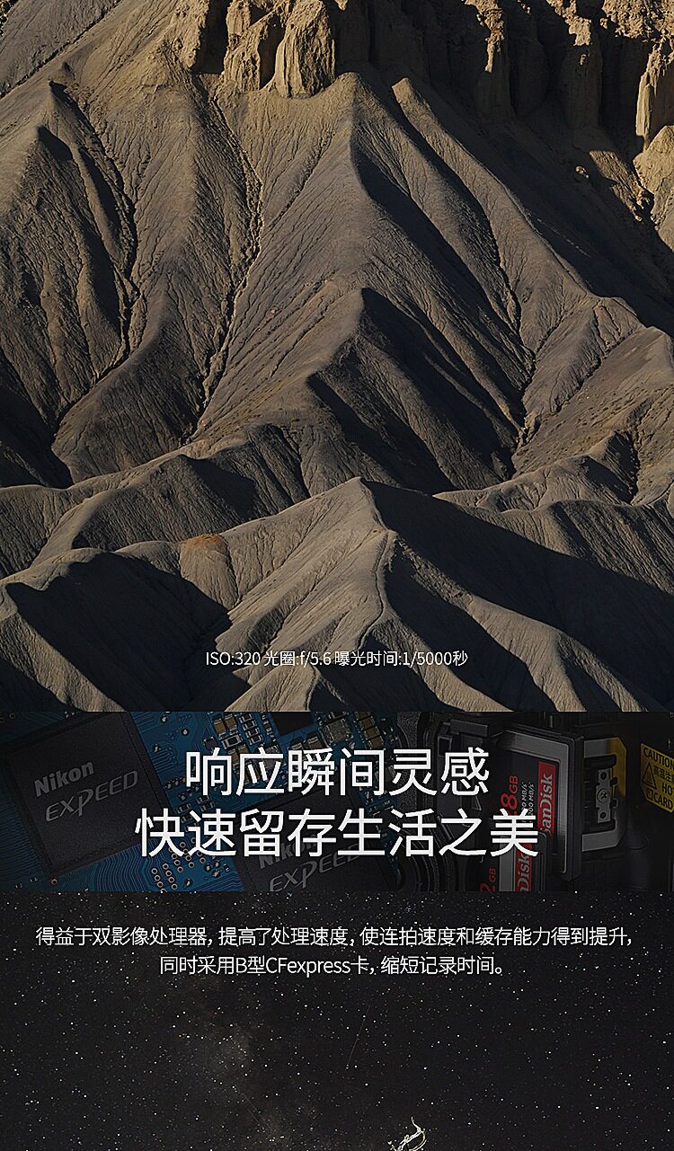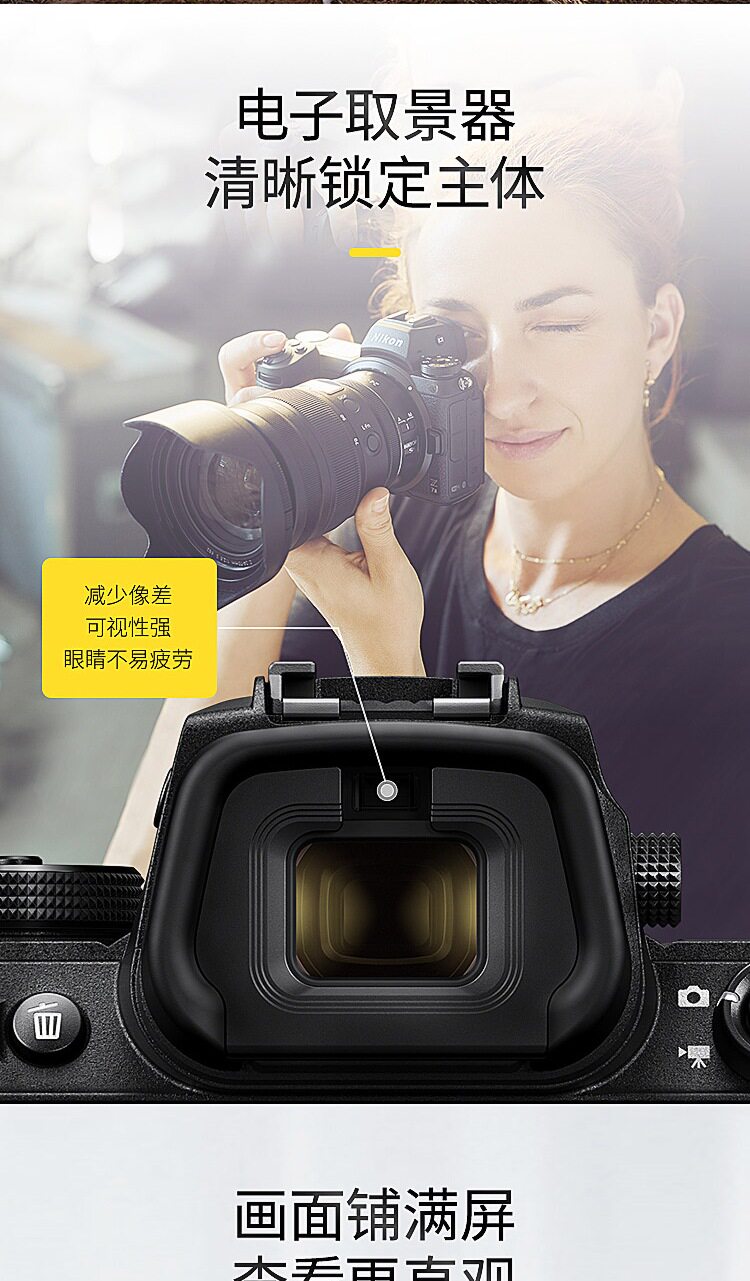 Z71的Z卡口规格55mm大直径卡口和16mm短法兰距,支持尼克尔Z卡口镜头为大量的光线传输到高像素传感器而优化。