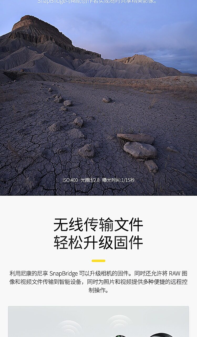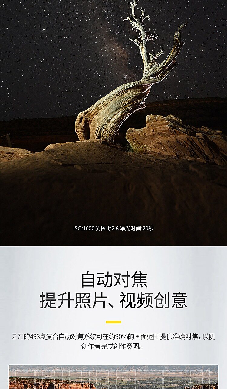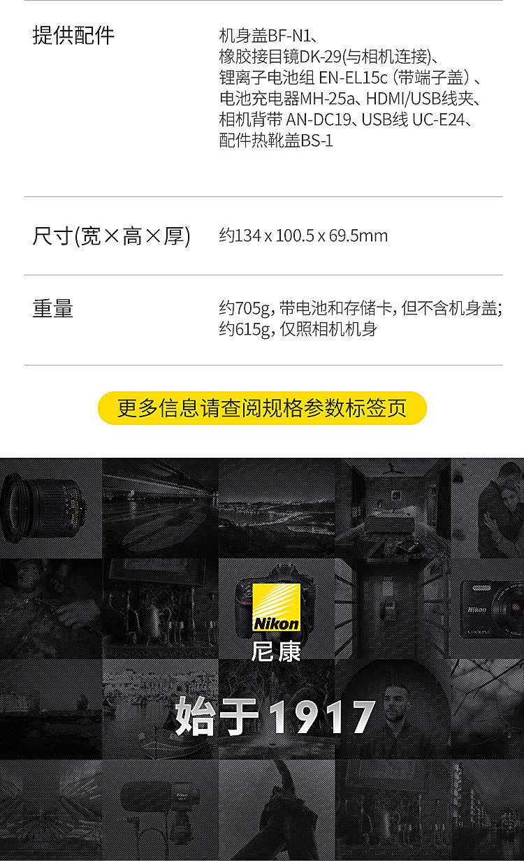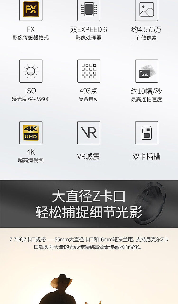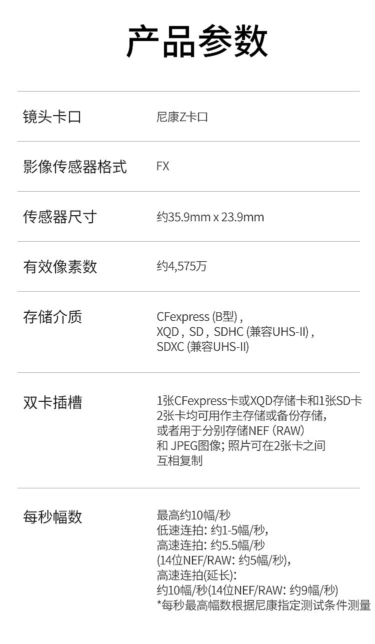 Z71的Z卡口规格55mm大直径卡口和16mm短法兰距,支持尼克尔Z卡口镜头为大量的光线传输到高像素传感器而优化。