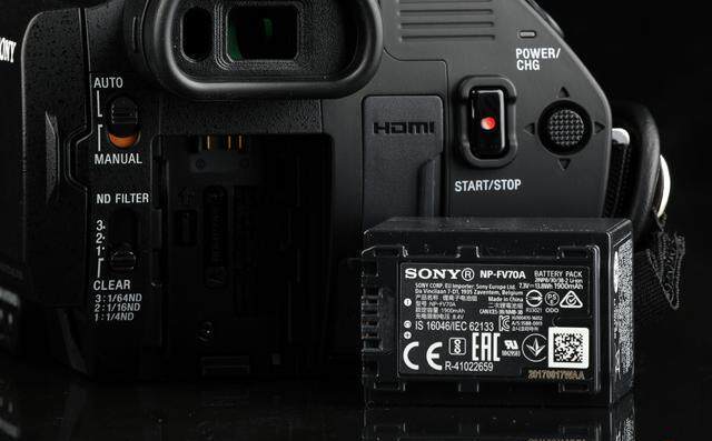 索尼FDR-AX700标配一块额定容量为1900mAh的NP-FV70A电池作为电源。大容量电池是长时间拍摄的保证。