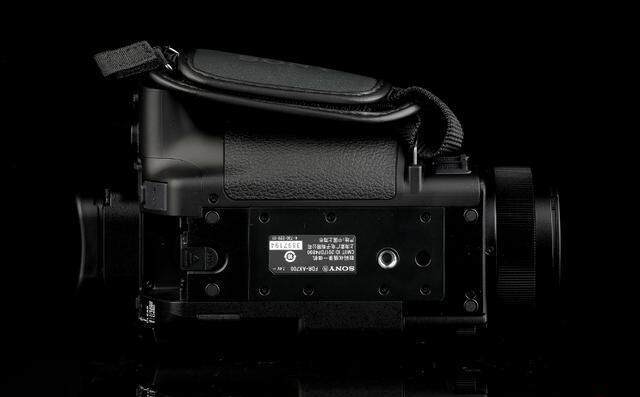FDR-AX700的机身底部则设有电池释放拨杆和三脚架插孔。