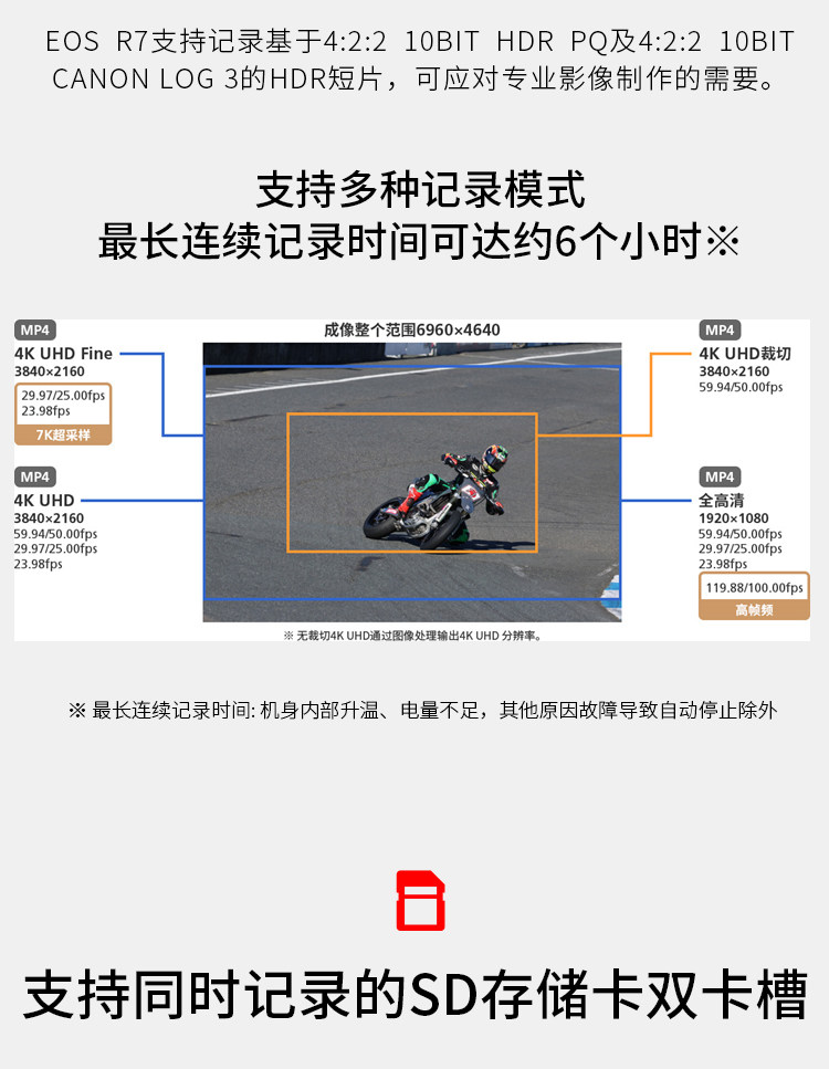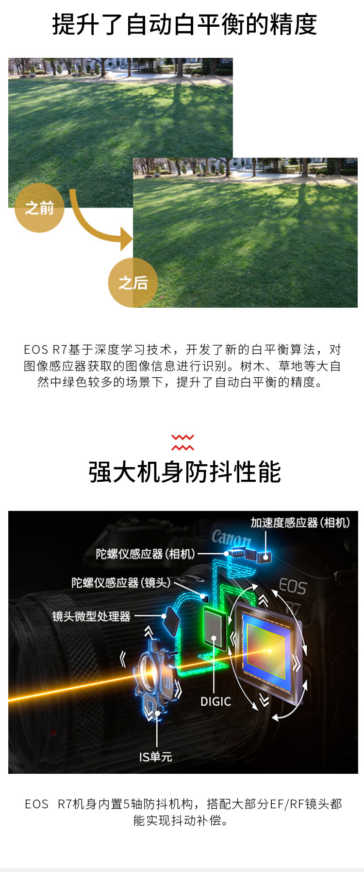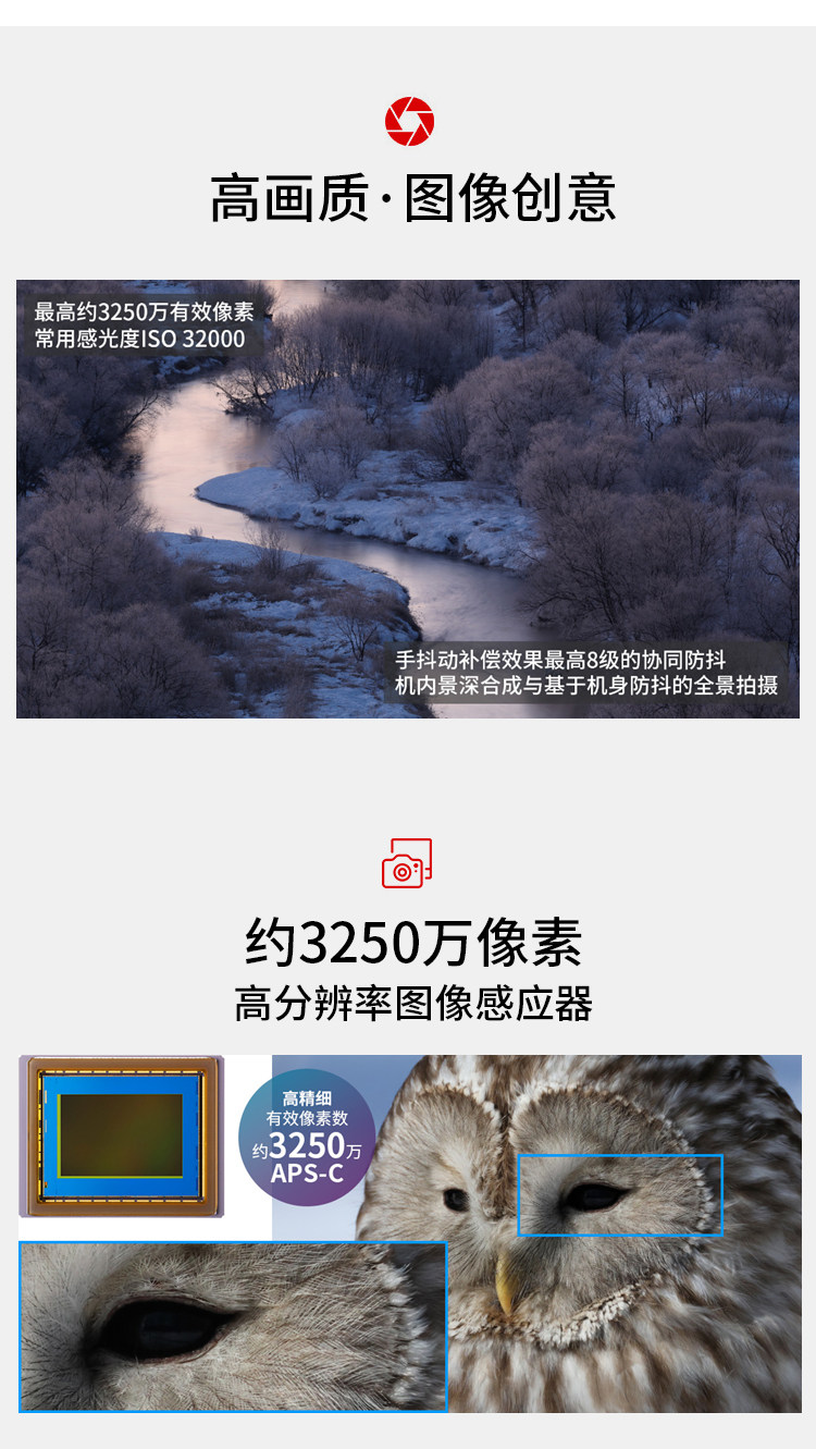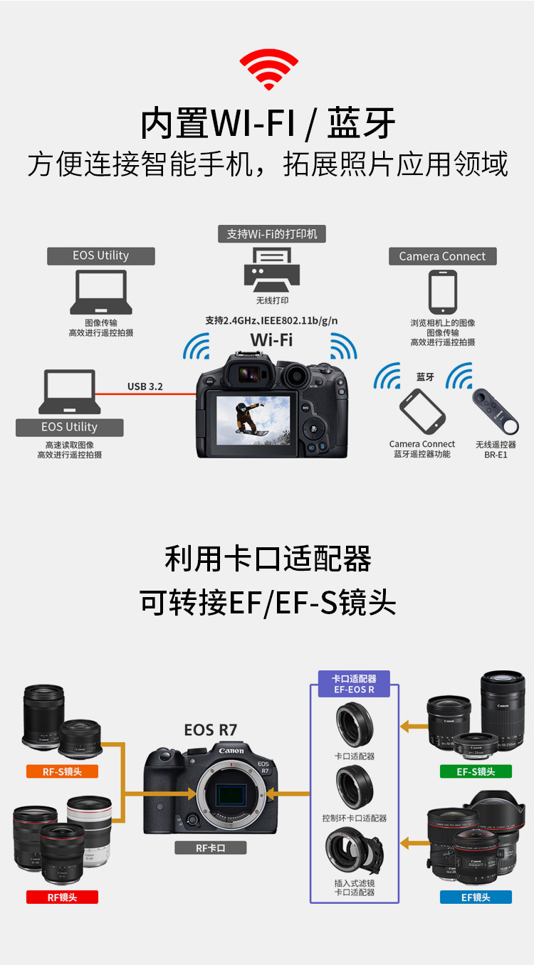 EOS R7实现了不输专业机型的高速度及高性能,同时发挥无反光镜结构的优势,在设计上更加小型轻量,具备很强的机动性。