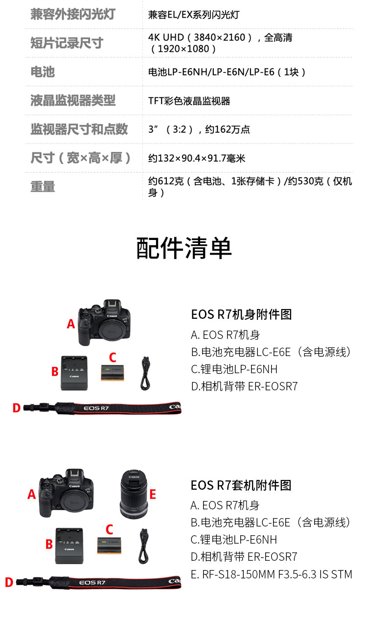 ·USB充电: LP-E6NH/LP-E6N