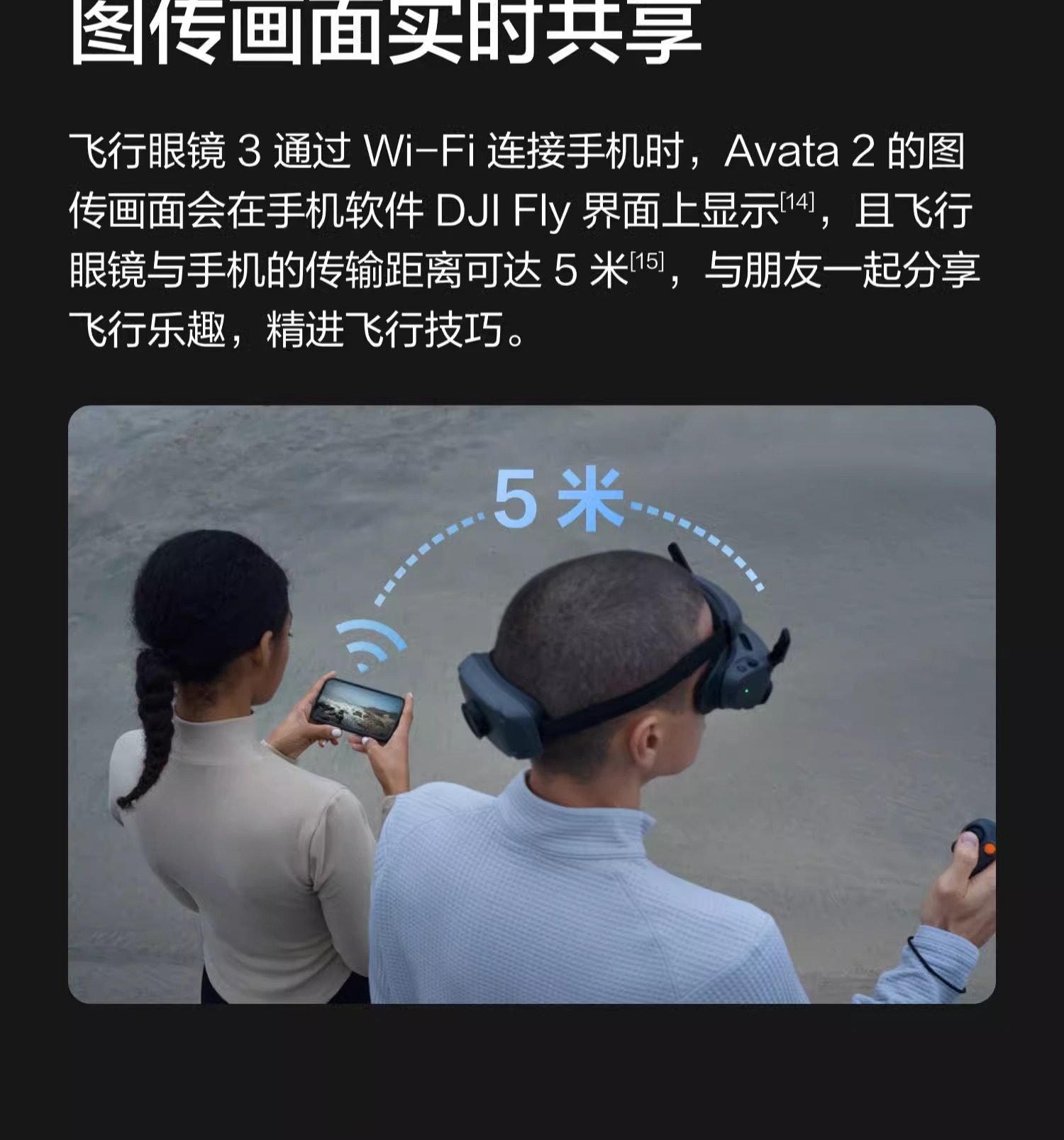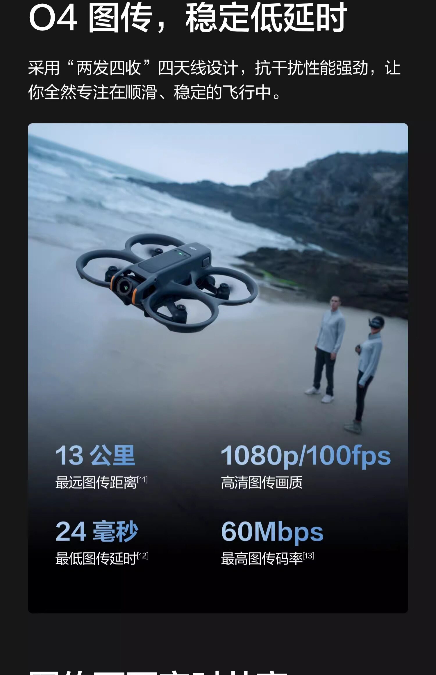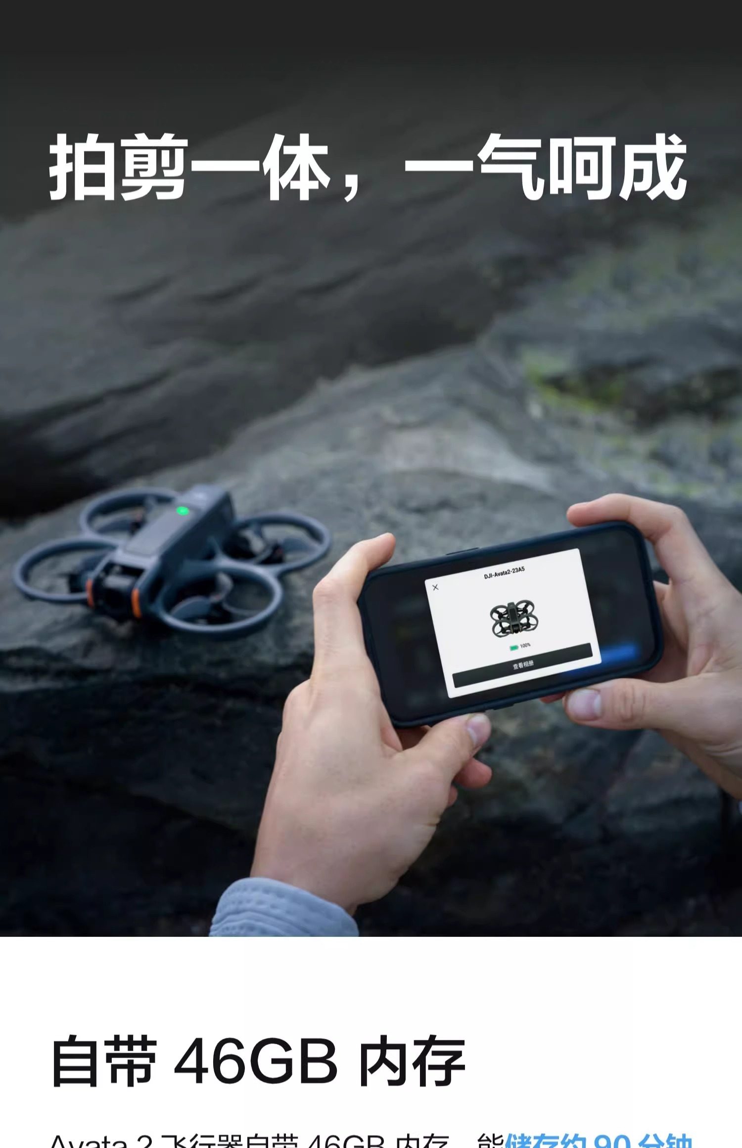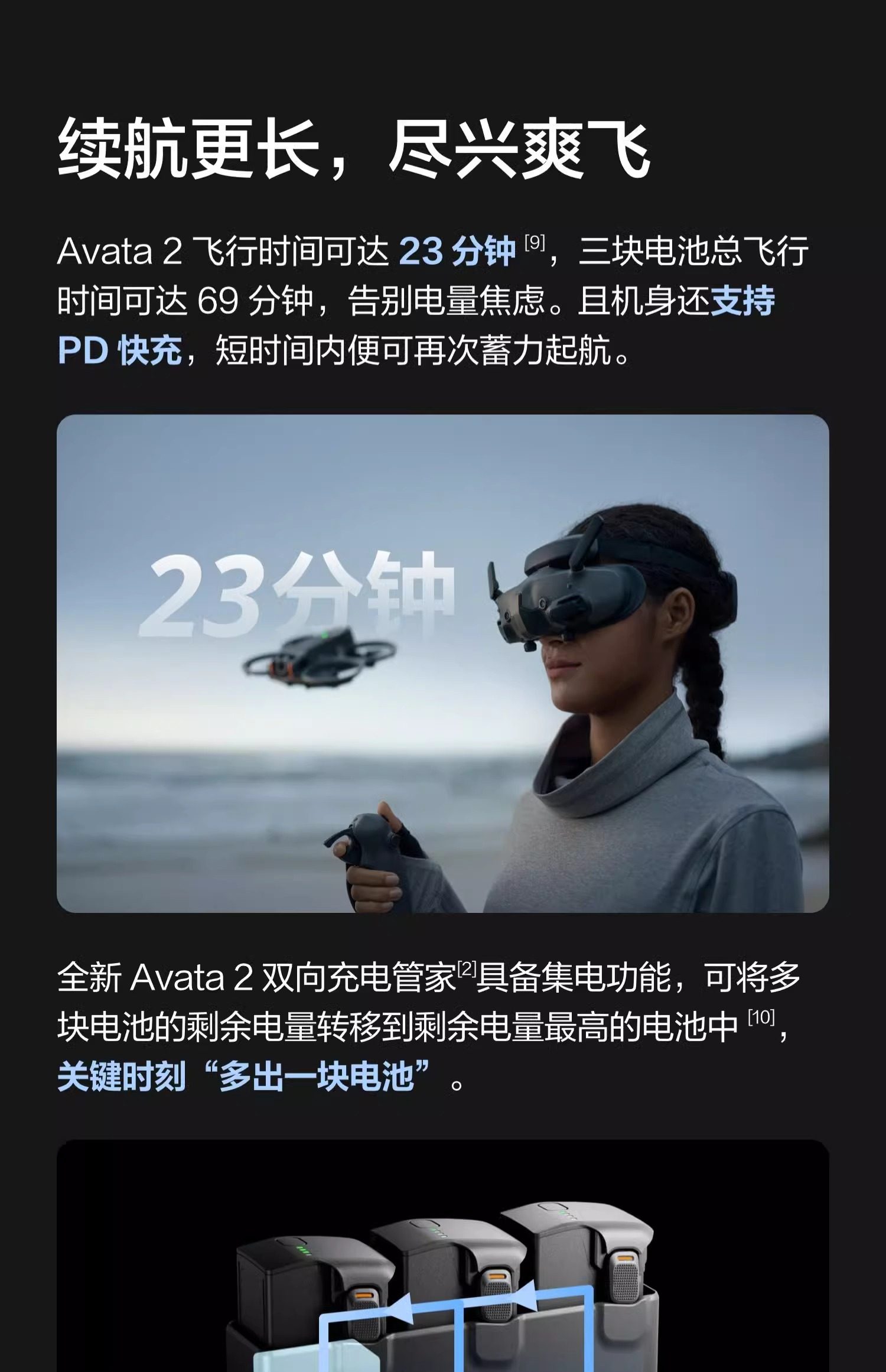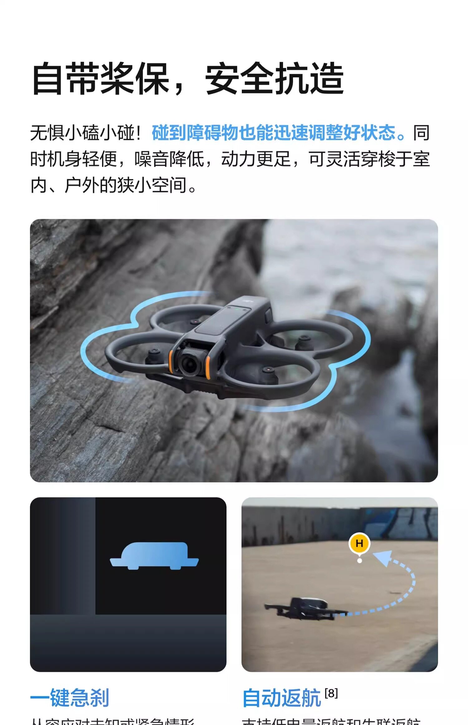 DJI Avata 2 飞行、影像、安全、续航性能全方位提升,配合全新飞行眼镜 3 和更易上手的穿越摇杆 3,飞行器的画面可实时回传至眼前,同时实现“指哪飞哪”的体感操控,打造超燃的沉浸式飞行。