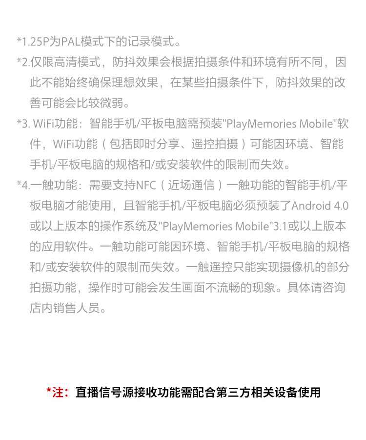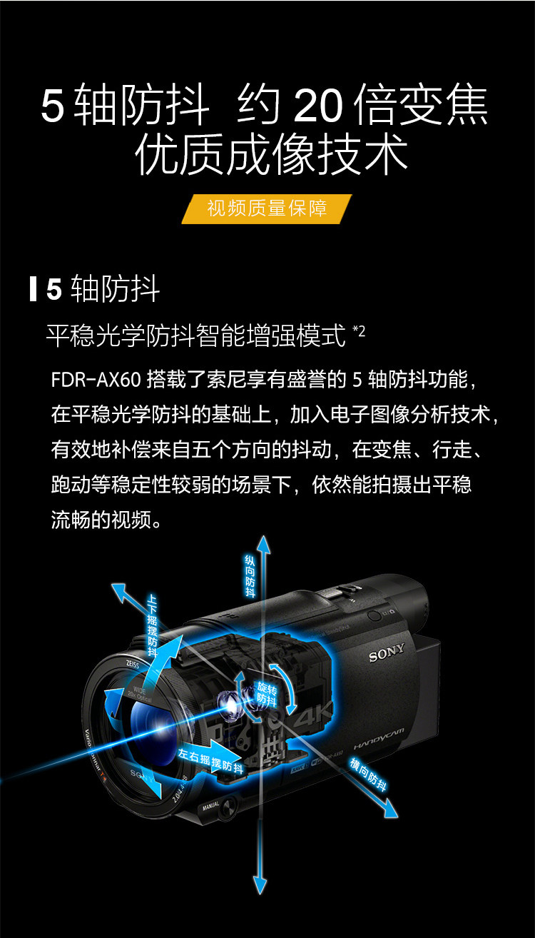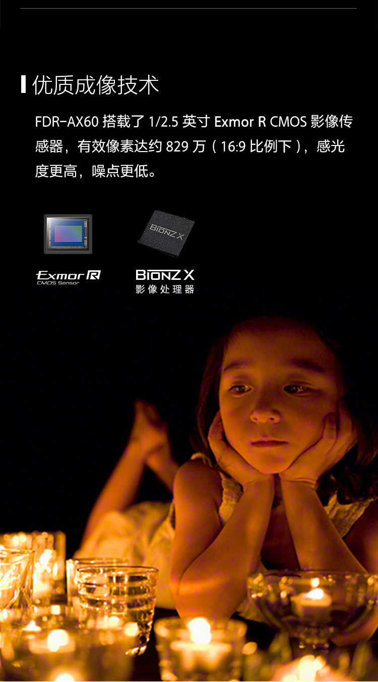 区别于索尼高清数码摄像机(1920 x 1080 ,其分辨率可达到 3840x2160,支持 4 倍于高清分辨率的影像细节。能以100MbpsXAVCS 由专业级的XAVC 格式发展而来,的高码流实现高质量影片录制。