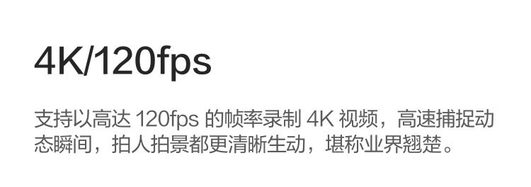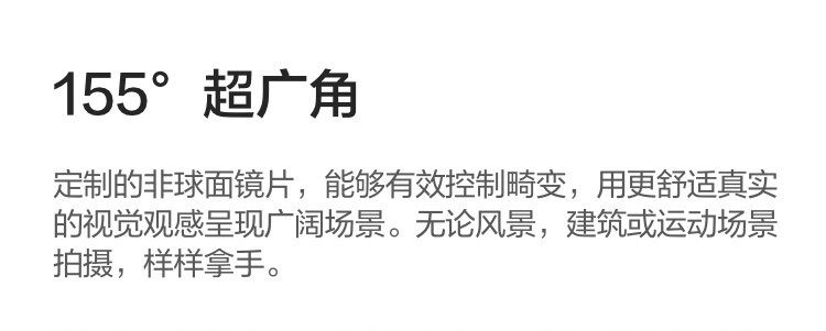 突破性的4K/120fps 视频品质,高速捕捉动感瞬间。低略变的155”超广角镜头,每个画面都震撼眼球。