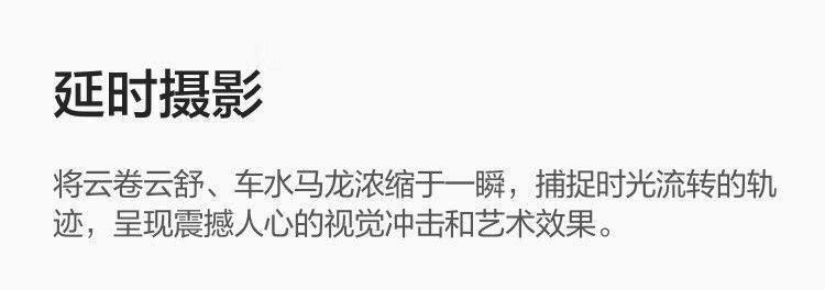 数码变焦、延时摄影、慢动作等绝技,都不在话下,拍完后还可自动为你挑选和剪辑精华片段,配乐与转场也统统搞定。
