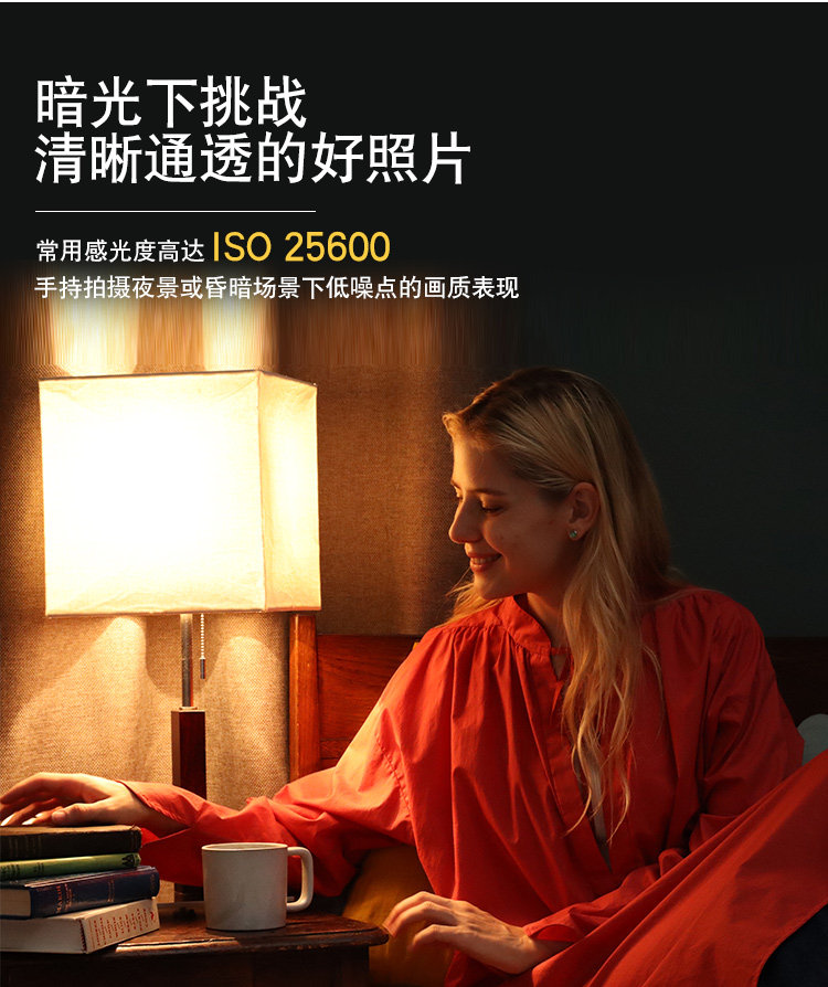 常用感光度高达ISO 25600手持拍摄夜景或昏暗场景下低噪点的画质表现