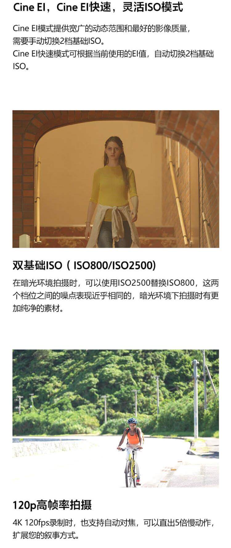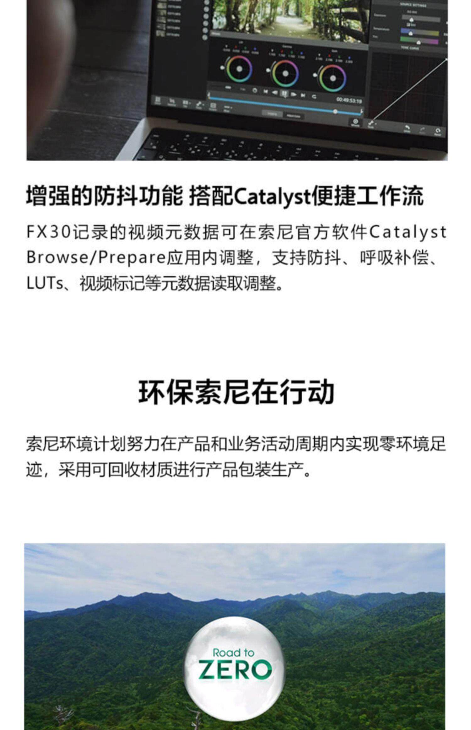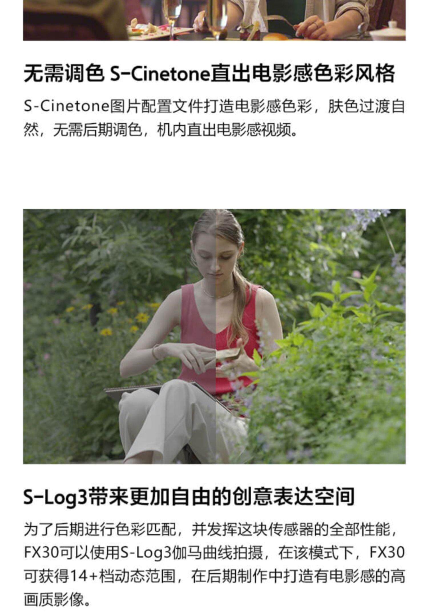 FX30的S-Cinetone图片配置文件让您可以直出有电影感色彩风格的视频。双基础ISO和Cine EI模式提供艳丽影像电影感拍摄及工作流。