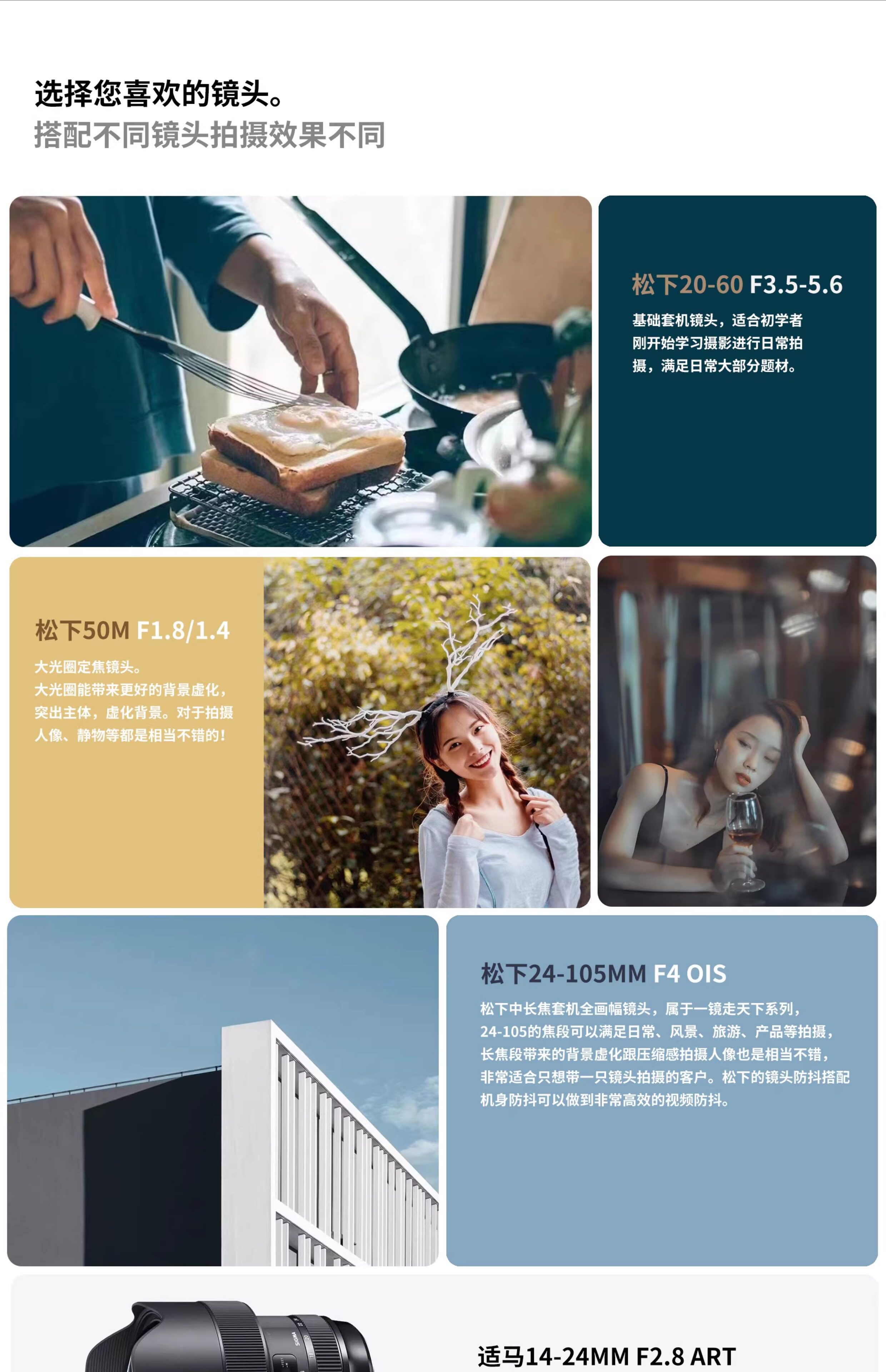 选择您喜欢的镜头。搭配不同镜头拍摄效果不同