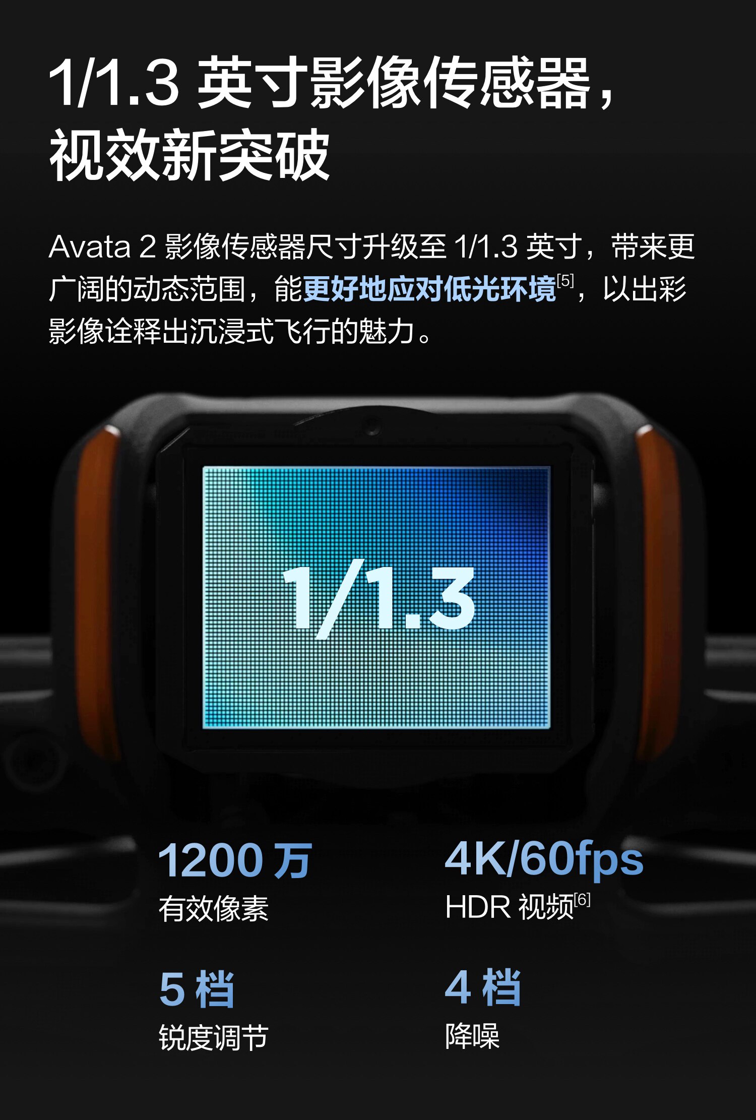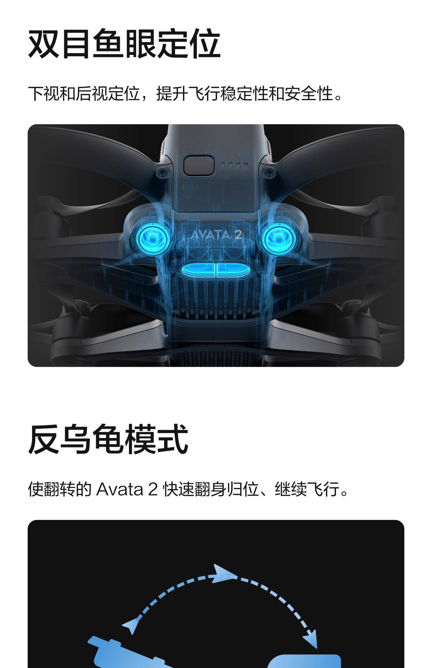 DJI Avata 2 飞行、影像、安全、续航性能全方位提升,配合全新飞行眼镜 3 和更易上手的穿越摇杆 3行器的画面可实时回传至眼前,同时实现“指哪飞哪”的体感操控,打造超燃的沉浸式飞行。
