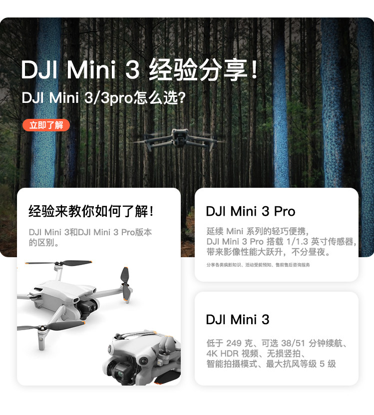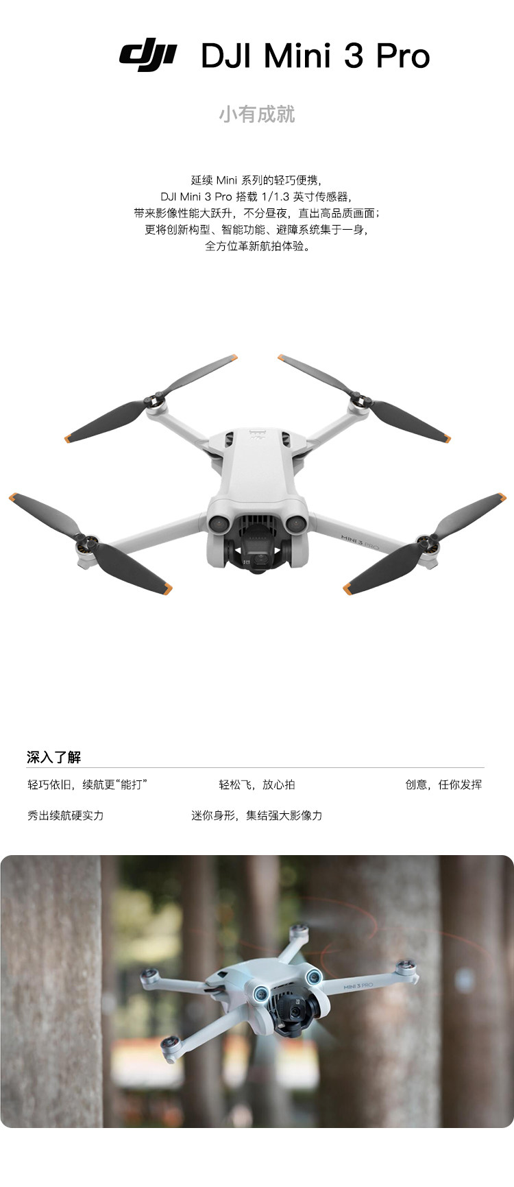 延续 Mini 系列的轻巧便携DJI Mini 3 Pro 搭载 1/1.3 英寸传感器带来影像性能大跃升