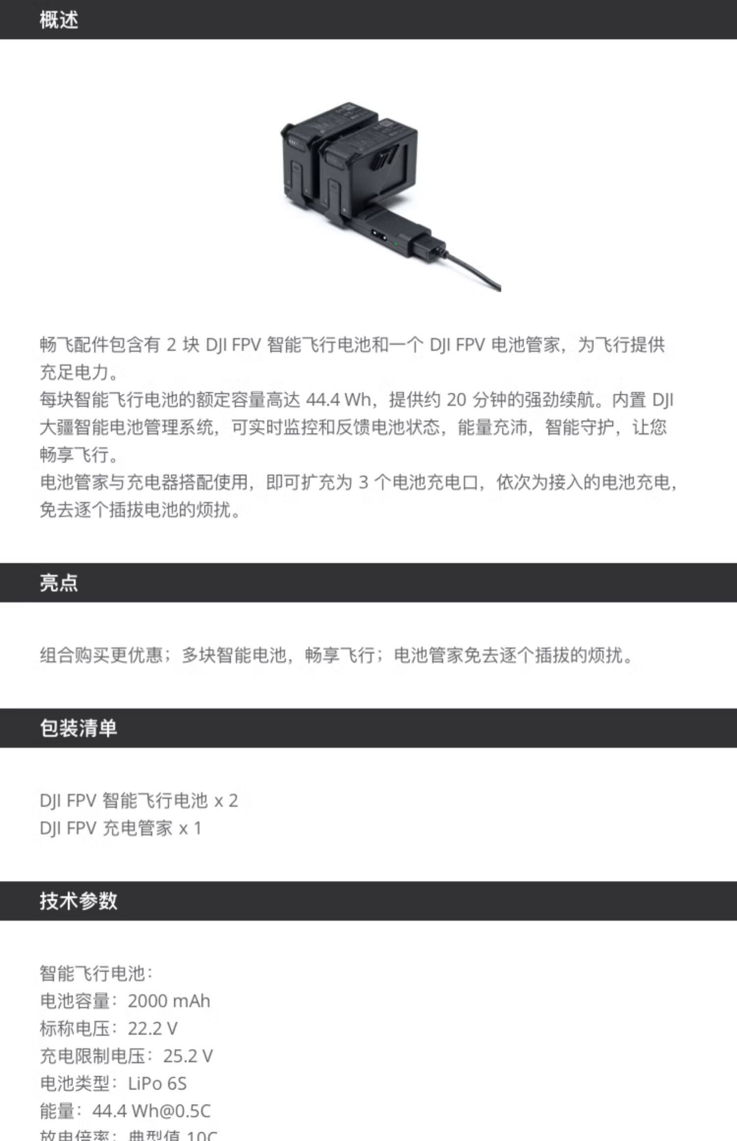 DJI FPV 智能飞行电池 x 2DJI FPV 充电管家 x 1