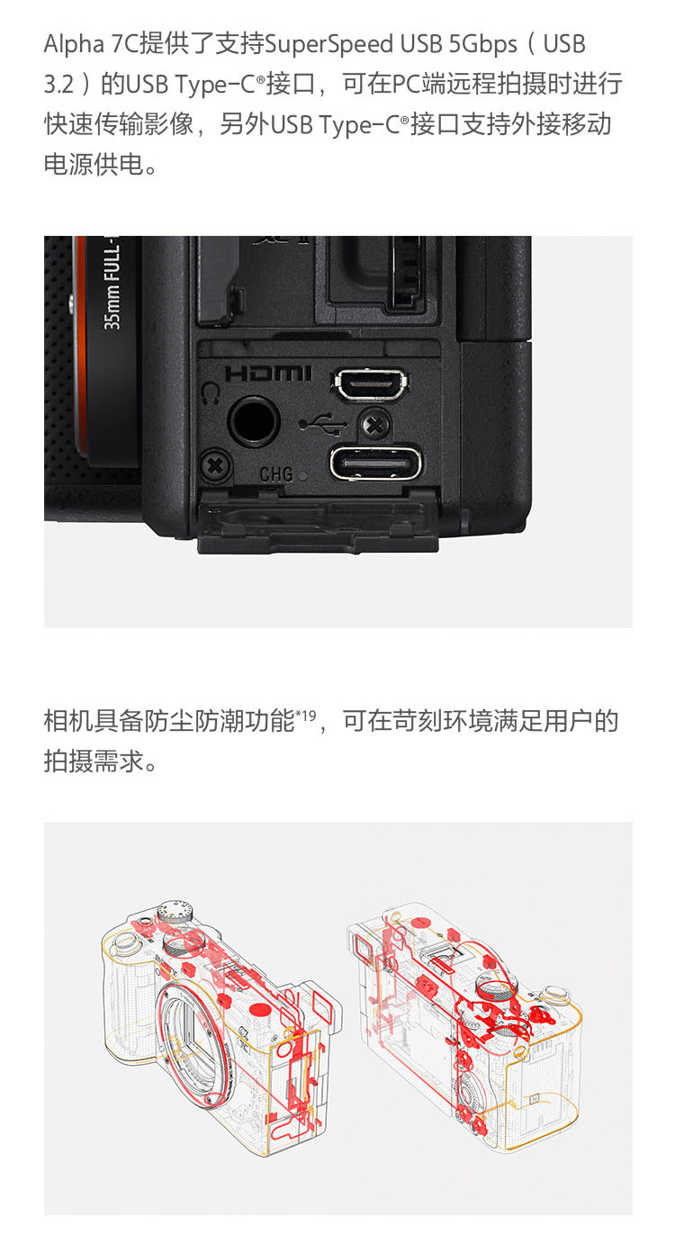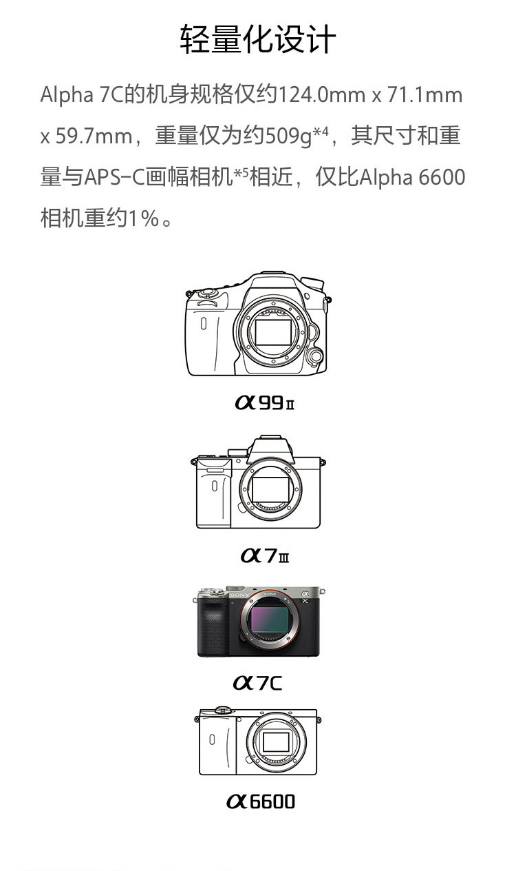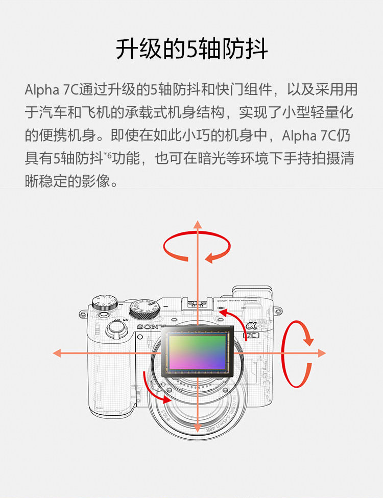 实现了小型轻量化的便携机身。即使在如此小巧的机身中,Alpha 7C仍具有5轴防抖”功能