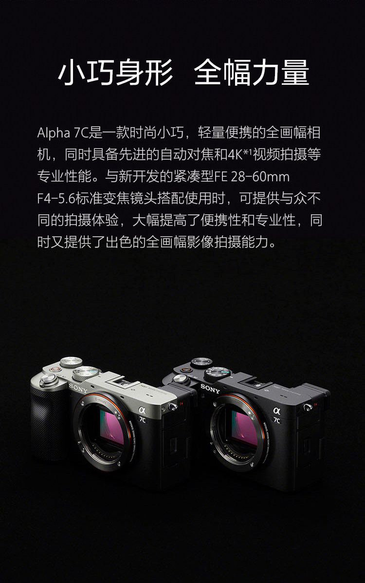 Alpha 7C是一款时尚小巧,轻量便携的全画幅相机